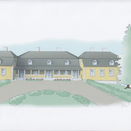 Piirros kirjaan, rekonstruktio palaneesta rakennuksesta